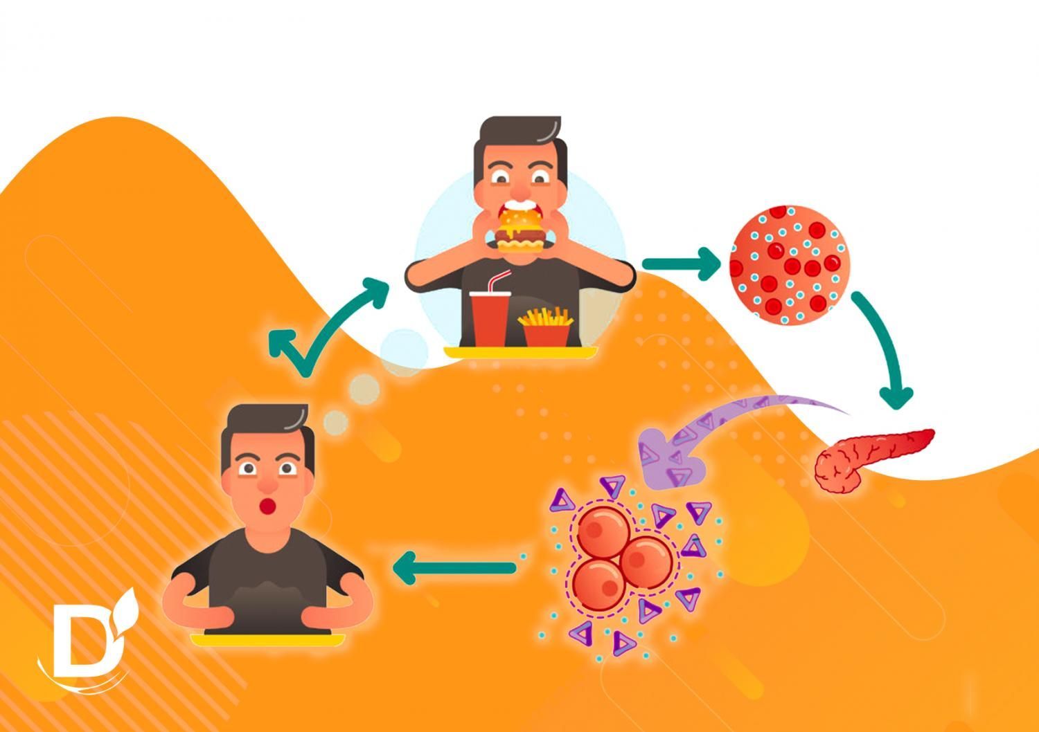 После приема пищи уровень сахара крови повышается, в ответ поджелудочная железа вырабатывает инсулин. Гормон помогает глюкозе из крови попасть в клетки: глюкоза утилизирована, сахар в крови в норме, клетки сыты - все хорошо.