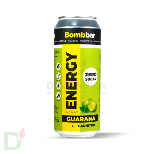 Энергетический напиток с витаминами Bombbar без сахара, Лайм-Мята, 500 мл