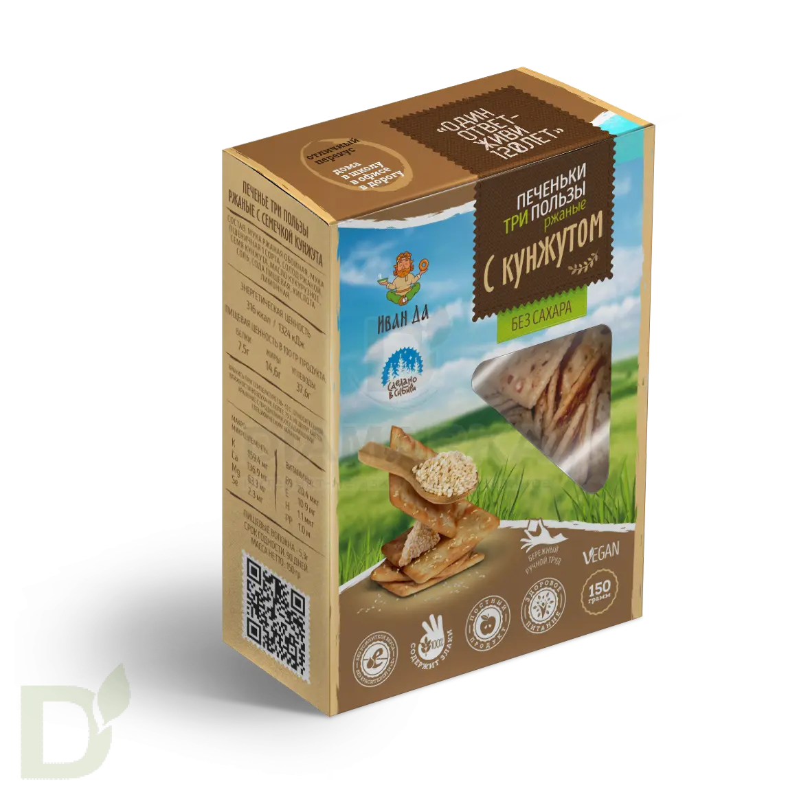 Продукты для правильного и здорового питания - это один из главных принципов компании "Иван-ДА". Они производят оригинальные и уникальные продукты с использованием только натуральных ингредиентов. В составе печенья вы не найдете никаких синтетических компонентов, все изготовлено с любовью и заботой о вашем здоровье.